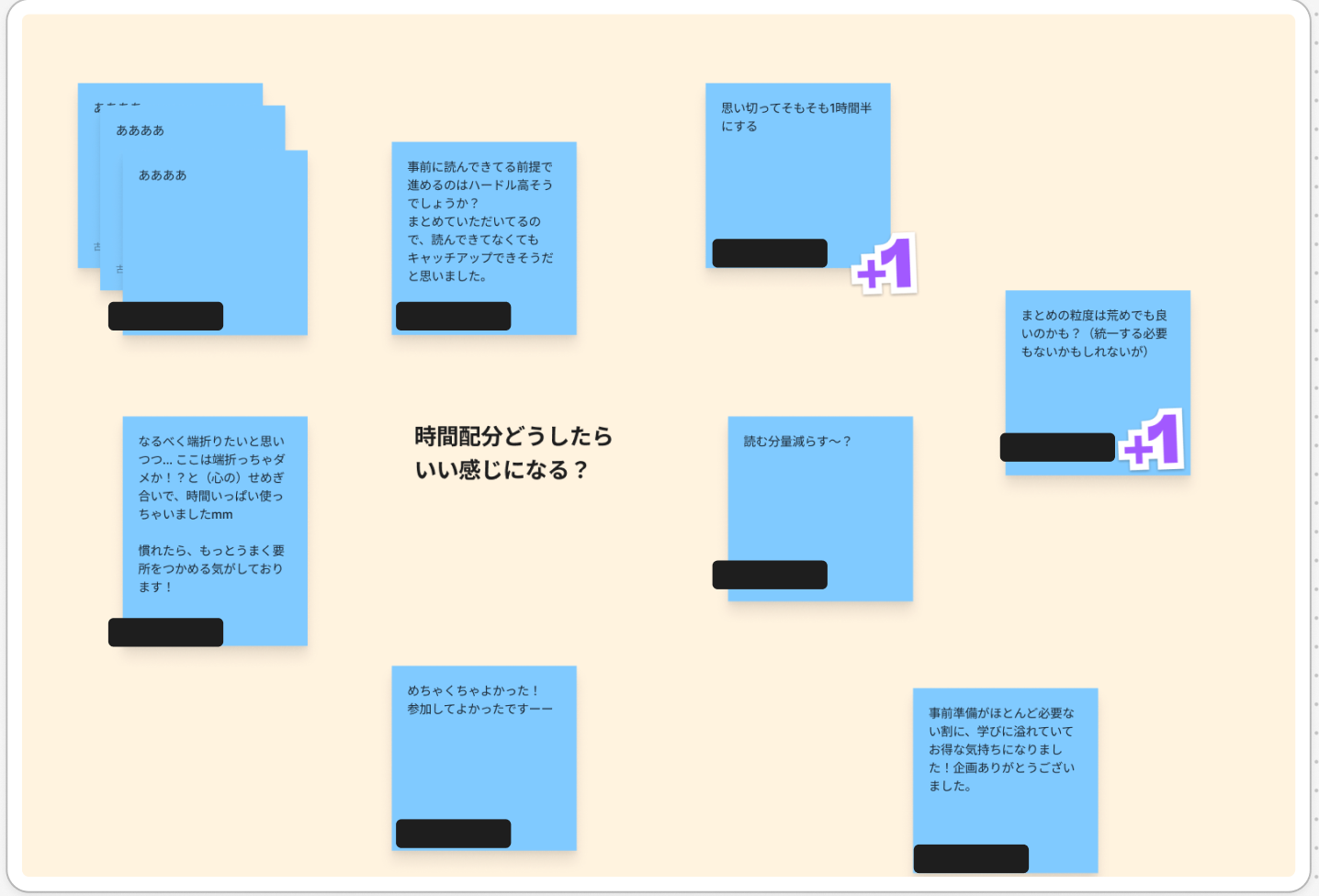 勉強会の最後に振り返りを入れることで、次回への改善に繋げられます。たとえ5分でもフィードバックをもらったり振り返る時間を設けましょう。参加者の声は、勉強会がもっと価値のある時間になるためのヒントの宝の山です!