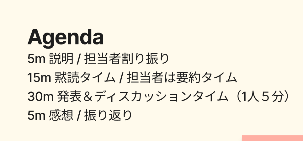 時間配分を明確にすることで、勉強会をスムーズに進められます。冒頭でタイムスケジュールを簡単に共有することがポイントです。